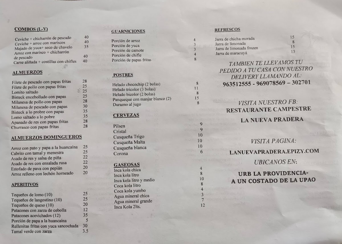 Welcome to La NuevaPradera, nestled in the heart of Piura, Peru. This vibrant eatery specializes in a delightful array of seafood and meat dishes, enticing patrons with its expertly prepared meals. The highlight of the menu is the renowned ceviche, praised for its perfect balance of seasoning and freshness, along with mariscada and other local delicacies.